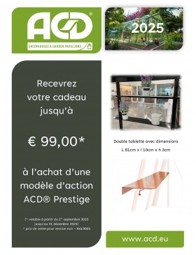 Gewächshäuser und Zubehör der Marke Janssens und ACD sind nur in Frankreich verfügbar. Die Lieferzeit beträgt ca. 10 wochen (außer in Fällen höherer Gewalt .
