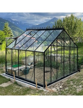 Entwickelt, damit Sie Ihre Pflanzen überwintern oder Ihre Pflanzen und Setzlinge geschützt vor schlechtem Wetter, vorbereiten können, diese Saphir 910 VT gehärtetes Glas Gewächshaus von 9.10 m2 hat den Vorteil, sowohl ästhetisch, solide als auch widerstandsfähig zu sein.