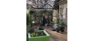 Viktorianisches quadratisches Gewächshaus, schwartz lackierte Aluminiumstruktur und gehärtetes Glas 4 mm.