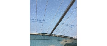 Vorsicht, er hängt nur an den Zwischenbügeln. Überprüfen Sie die Breite Ihres Gewächshauses vor der Bestellung.