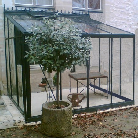 Deze kas is verkrijgbaar in zwart of groen gelakt aluminium en met glasbreedtes van 37 cm of 73 cm: kies de kas die het beste bij u past! En als u andere afmetingen of opties wenst (deuren, ramen, enz.), neem dan gerust contact met ons op.