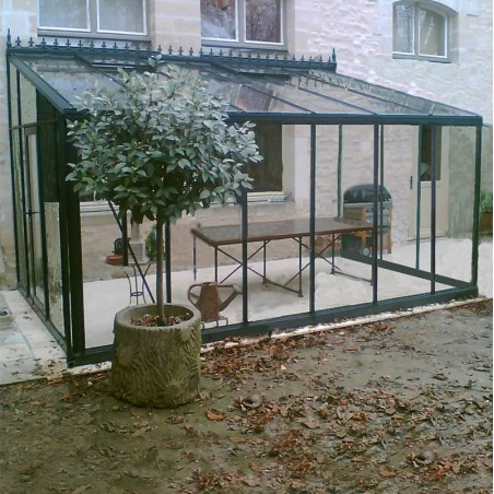 Deze kas is verkrijgbaar in zwart of groen gelakt aluminium en met glasbreedtes van 37 cm of 73 cm: kies de kas die het beste bij u past! En als u andere afmetingen of opties wenst (deuren, ramen, enz.), neem dan gerust contact met ons op.