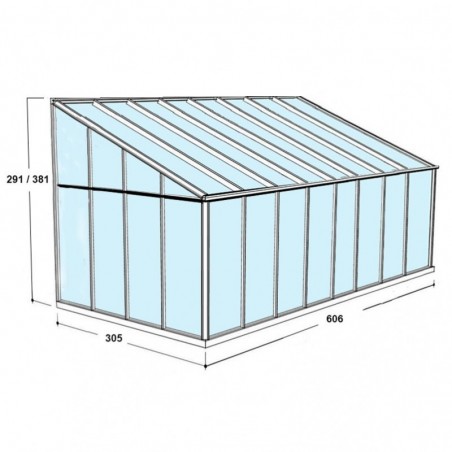 De gebruikte aluminium profielen hebben een bovengemiddelde doorsnede, de geharde glaspanelen die het dak vormen, zijn uit één stuk vervaardigd voor een perfecte afdichting en de hoogte van de wanden (2,04 m) en de nokhoogte (tussen 2,91 en 3.81m ) maken het mogelijk om comfortabel in de kas te werken of deze als leefruimte te gebruiken.