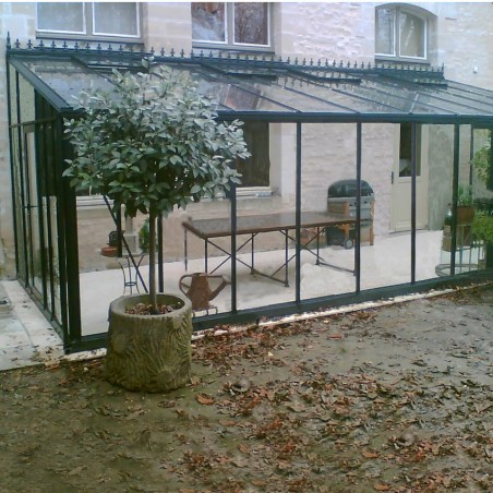 Deze kas is verkrijgbaar in zwart of groen gelakt aluminium en met glasbreedtes van 37 cm of 73 cm: kies de kas die het beste bij u past! En als u andere afmetingen of opties wenst (deuren, ramen, enz.), neem dan gerust contact met ons op.