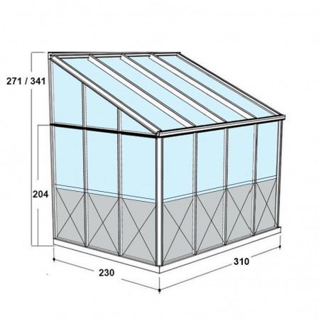 De gebruikte aluminium profielen hebben een bovengemiddelde doorsnede, de geharde glaspanelen die het dak vormen, zijn uit één stuk vervaardigd voor een perfecte afdichting en de hoogte van de wanden (2,04 m) en de nokhoogte (tussen 2,71 m en 3,41 m) maken het mogelijk om comfortabel in de kas te werken of deze als leefruimte te gebruiken.