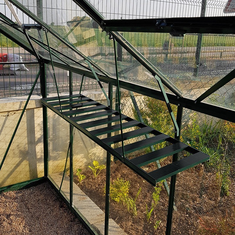 Opvouwbare plank in zwart gelakt aluminium en roestvrijstalen schroeven, ontwikkeld voor de Opale, Jade, Saphir of Rubis zwarte kassen (zelfde zwarte kleur)