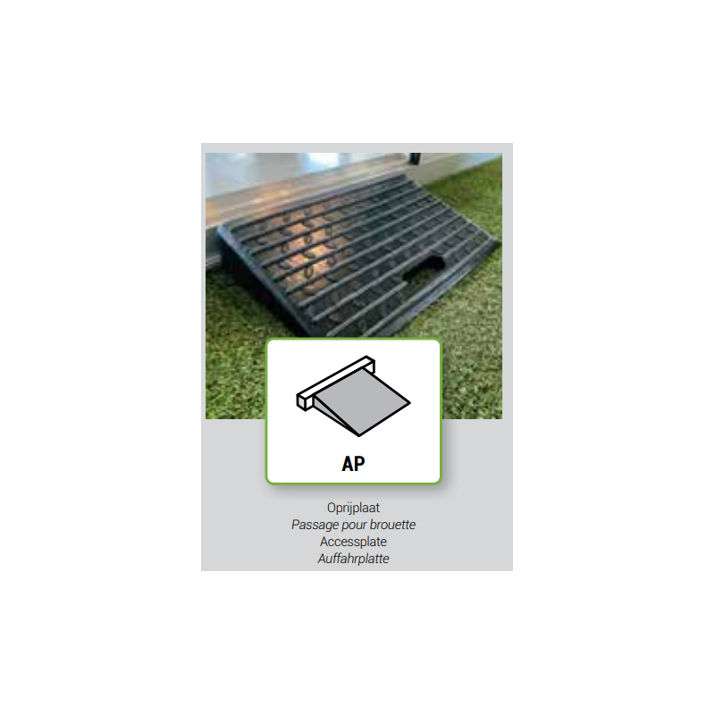 Een onderdeel dat ervoor zorgt dat kruiwagens over de drempel kunnen.