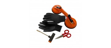 Montageset waarmee u uw kas in elkaar kunt zetten. Deze set bestaat uit een schaar, een paar handschoenen, een sleutel voor de bouten en een zuignap voor het glas.