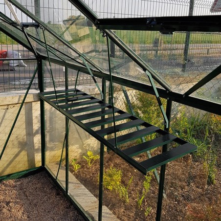 Deze 10,40 m² grote Jade 1040 VT kas van zwart gehard glas is ontworpen om uw planten te laten overwinteren, uw zaailingen en planten beschut tegen de elementen te laten staan of zelfs een wintertuin aan te leggen. Deze kas heeft als voordeel dat hij zowel esthetisch, solide als duurzaam is.