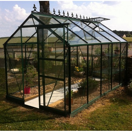 Deze 9,10 m² grote kas van gehard glas Saphir 910 VT is ontworpen om uw planten te laten overwinteren, uw zaailingen en planten beschut tegen de elementen voor te bereiden of zelfs een wintertuin aan te leggen. Deze kas is esthetisch, stevig en duurzaam.