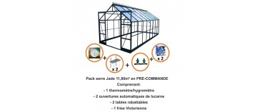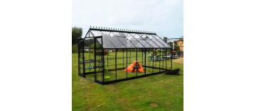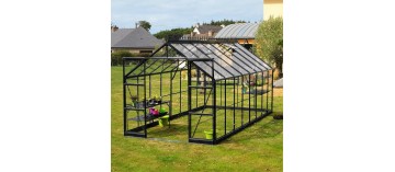Deze kas van zwart gehard glas Jade 1180 VT van 11,80 m² is ontworpen om uw planten te laten overwinteren, uw zaailingen en planten beschut tegen de elementen te laten staan of zelfs een wintertuin aan te leggen. Hij is esthetisch, stevig en duurzaam.