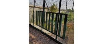 - twee opklapbare tafels in zwart gelakt aluminium, 120 x 52,5 cm