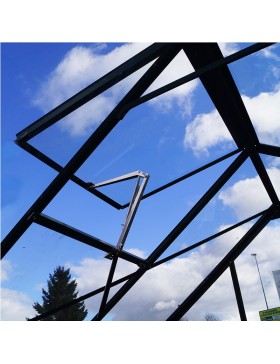 De Rubis 600 VT PRE 6m² aanbouwkas is ontworpen om zowel esthetisch als functioneel te zijn: niet alleen voegt hij een leefruimte toe aan uw huis, volledig gemaakt van gehard glas (met de mogelijkheid om de deur aan de rechter- of linkerkant te plaatsen en met een vlakke deurdrempel), maar hij bevordert ook de groei van uw planten dankzij de inwerking van de zon op de steunmuur van uw kas. Deze muur geeft 's nachts door thermische inertie de warmte af die hij overdag heeft opgeslagen en beperkt zo de temperatuurdaling in uw kas.