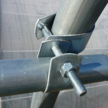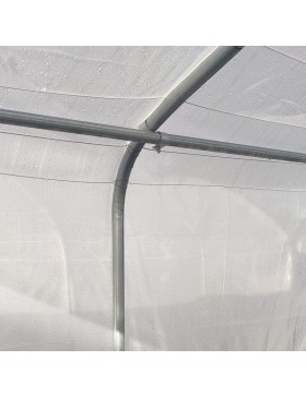 Tuinbouwkas of tunnel van gegalvaniseerde stalen buizen met een diameter van 32 en 40 mm en een professionele polyethyleen afdekking.