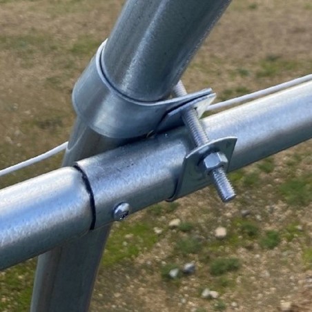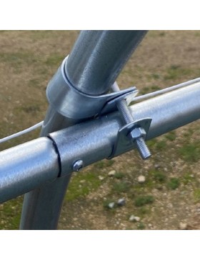 • Dwarsbuis van gegalvaniseerd staal, met een diameter van 32 mm, aan de basis van elke beugel om de montage te vergemakkelijken en de kas te stabiliseren.