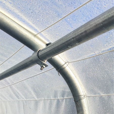 • Dwarsbuis van gegalvaniseerd staal, met een diameter van 32 mm, aan de basis van elke beugel om de montage te vergemakkelijken en de kas te stabiliseren.