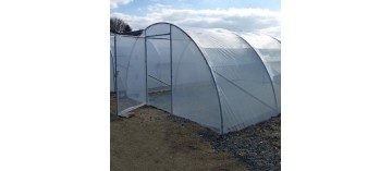 Tuinbouwkas of tunnel van gegalvaniseerde stalen buizen met een diameter van 32 en 40 mm en een professionele polyethyleen afdekking.